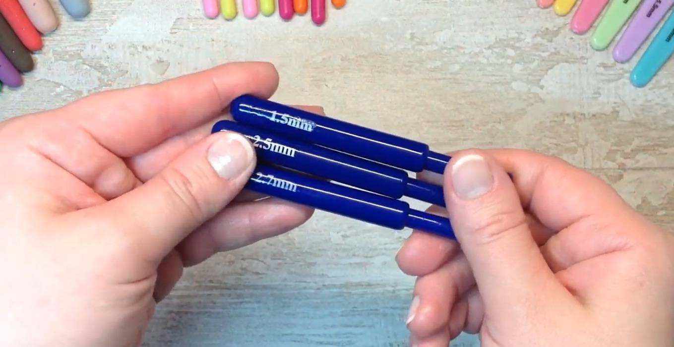 Отложите в сторону крючки, близкие к толщине пряжи . Их должно остаться 2-3 штуки с разницей в диаметре 1-2 мм.