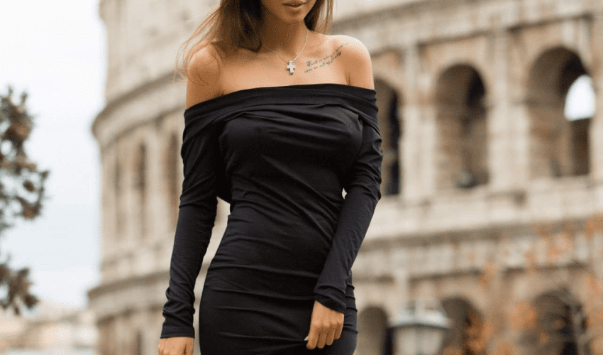 Одежда с открытыми плечами и спиной делает образ женственным и нежным. Для такого наряда лучше надеть лодочки, чтобы подчеркнуть изящность ног и сделать акцент на платье.