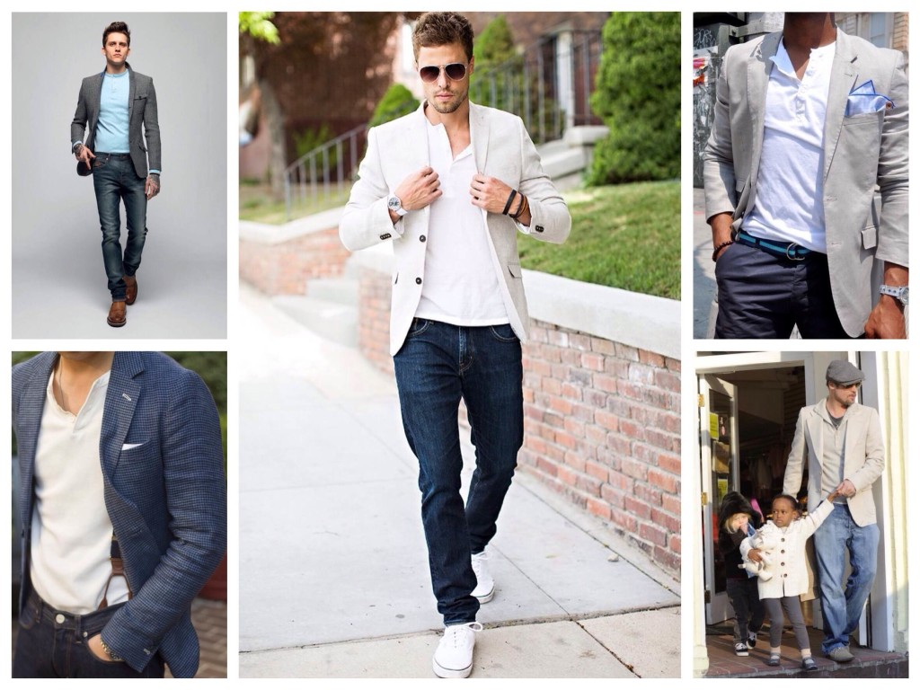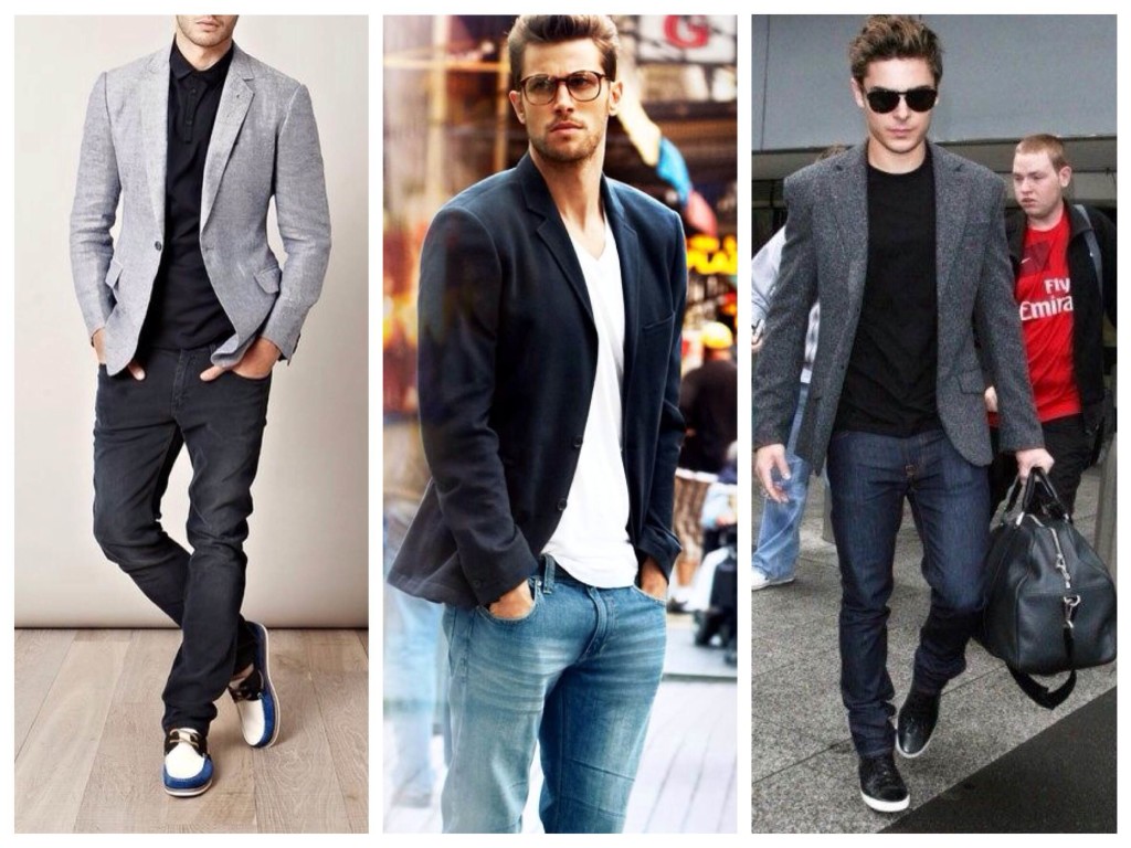 После просмотра в журналах фото, на которых изображены джинсы с пиджаком, мужские образы, в которых смелость дополняется сдержанностью, удается создавать многим представителям сильной стороны.