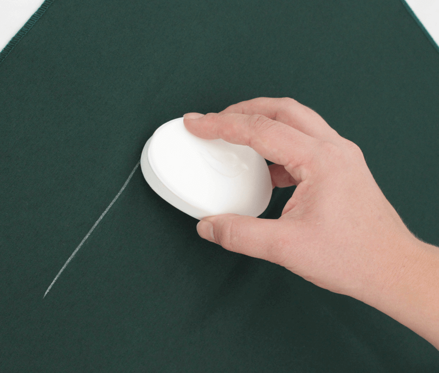 - Куском мыла или мелом для стирки разметить ткань (также можно использовать специальный маркер).