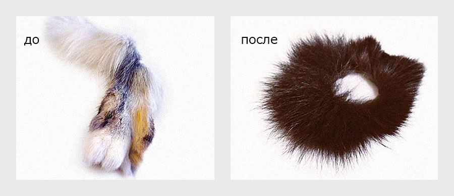 - по истечению нужного времени промывают, расчёсывают мех, оставляют до высыхания.