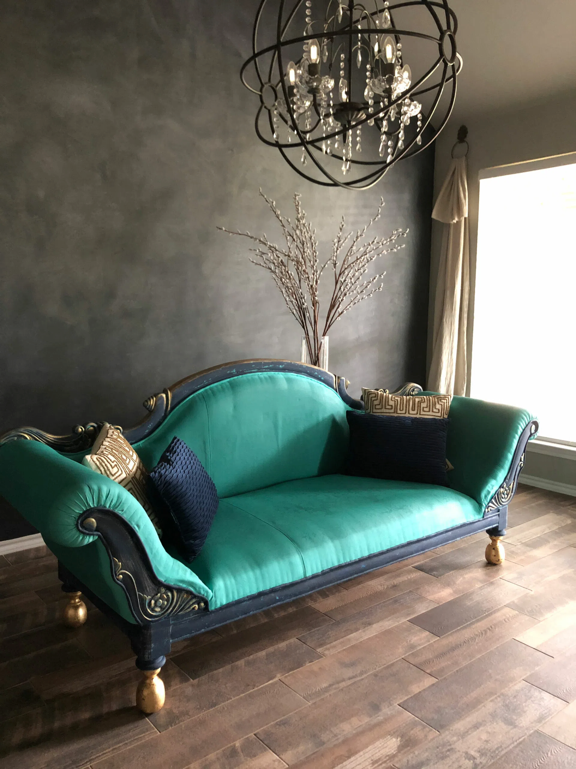 Удалите все детали, которые вам не нравятся, например, юбку из неаккуратной ткани. Снимите все съемные подушки и хорошо пропылесосьте все, используя насадку для обивки. При необходимости проведите точечную чистку водой с небольшим количеством моющего средства для посуды, затем дайте полностью высохнуть. Заклейте лентой те места, на которые не должна попадать краска, и застелите пол тряпкой или газетой.