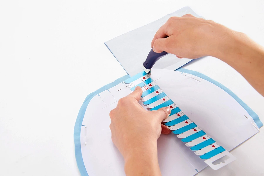 - понадобится сцепить все швы и чтоб материальчик не съезжался можно обтереть мылом, обмакнутым в водицу. Для разметки планируемой фурнитуры применяется шило;