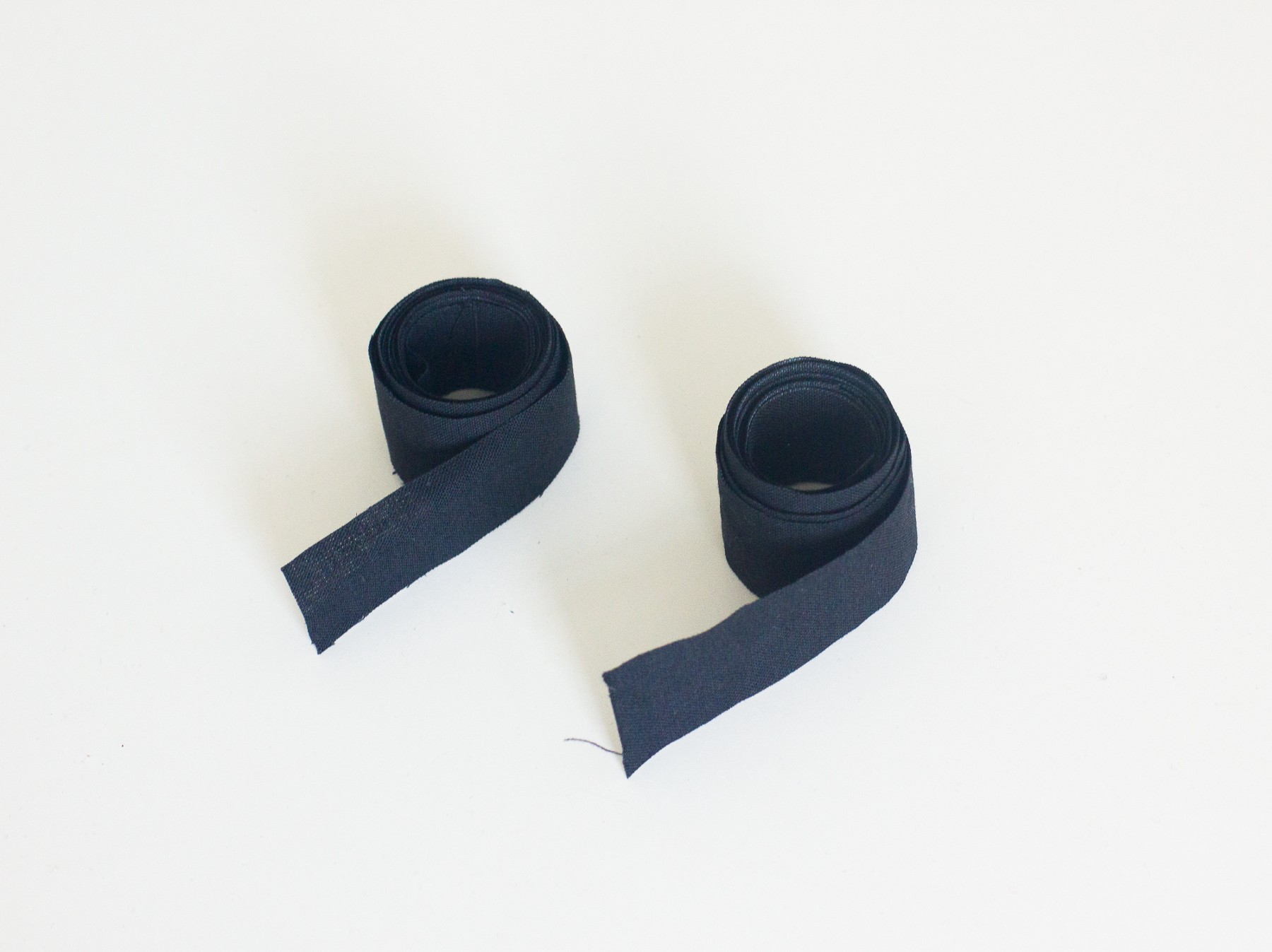 Теперь нужно сшить завязки. Вы можете сделать их из той же ткани, что и юбка, или использовать уже готовую ленту либо тесьму. Если вы решили шить, то вырежьте две полоски шириной в два с половиной сантиметра и длиной сто двадцать. Подверните края к середине, закрепите. Можно пройтись утюгом и прошить.