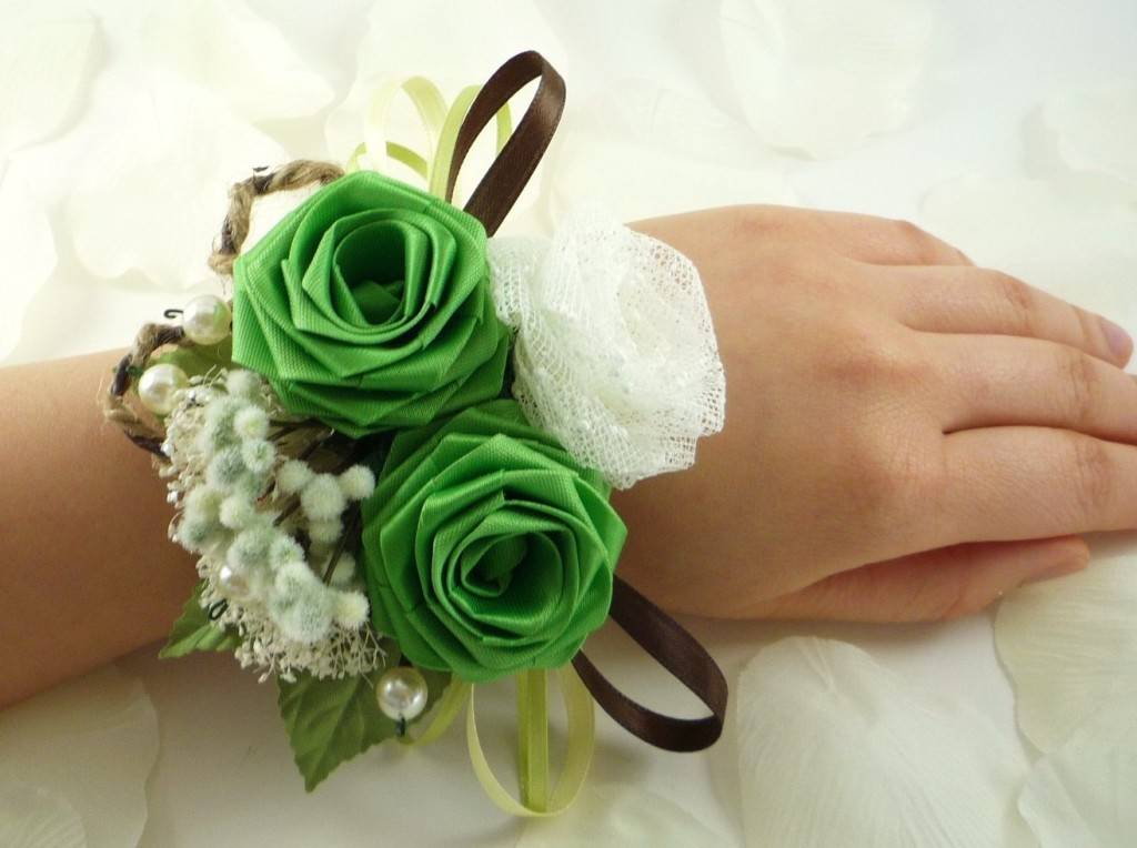 Браслеты можно надевать на перчатку или же на голую руку. В последнее время очень популярны браслеты из живых и искусственных цветов. Но с ними нужно быть осторожными, чтобы не затмить или не перегрузить свадебный букет.