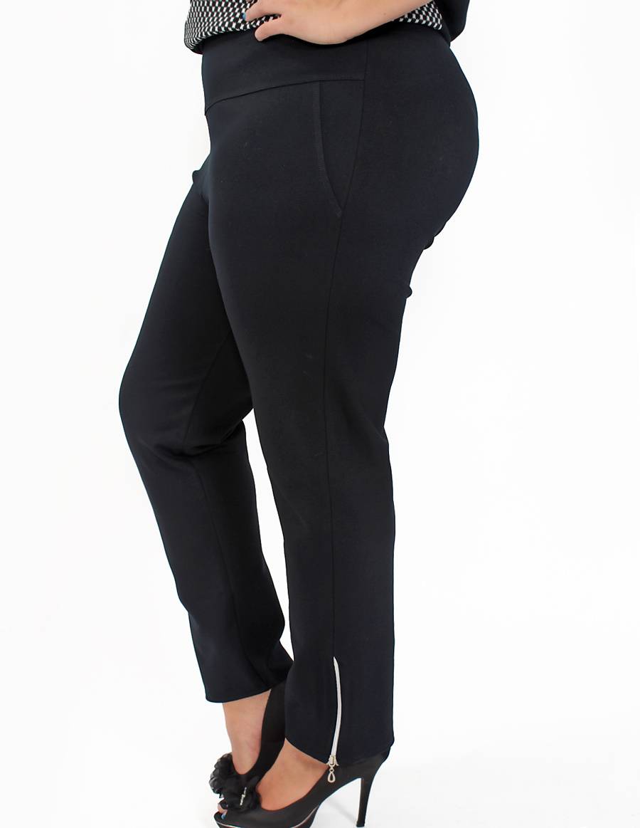- Зауженные к низу. Узкие брюки полных женщин не увеличивают в размерах. Наоборот. Умеренное уменьшение ширины брючин к щиколоткам позволяет откорректировать силуэт и сделать его более привлекательным.