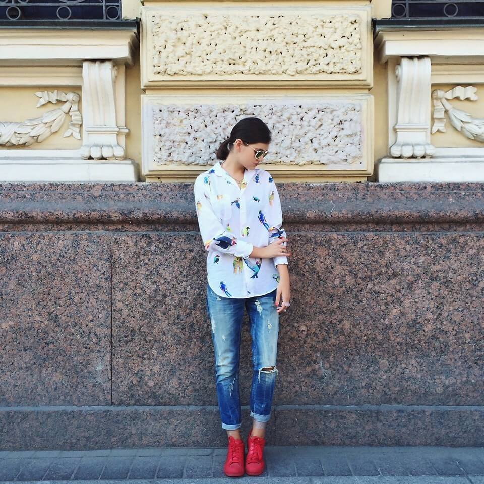 Если этот стиль близок моднице, особое внимание при создании образа стоит уделить деталям. С удлиненной рубашкой будут отлично сочетаться брюки с лампасами