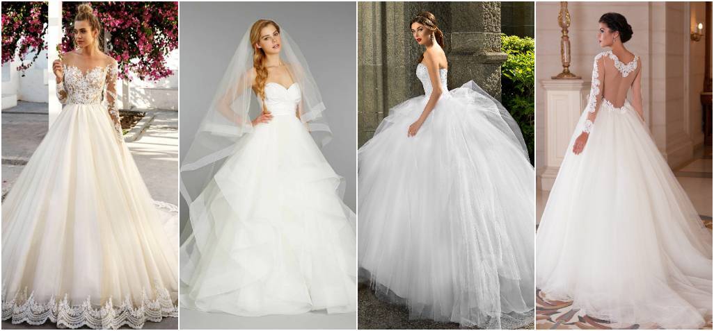 Большинство девушек с детства мечтают ощутить себя настоящей принцессой в пышном платье, и поэтому данные модели пользуются спросом всегда, не смотря ни на какие модные веяния. Главная черта данного фасона это облегающий лиф и пышная многослойная юбка.