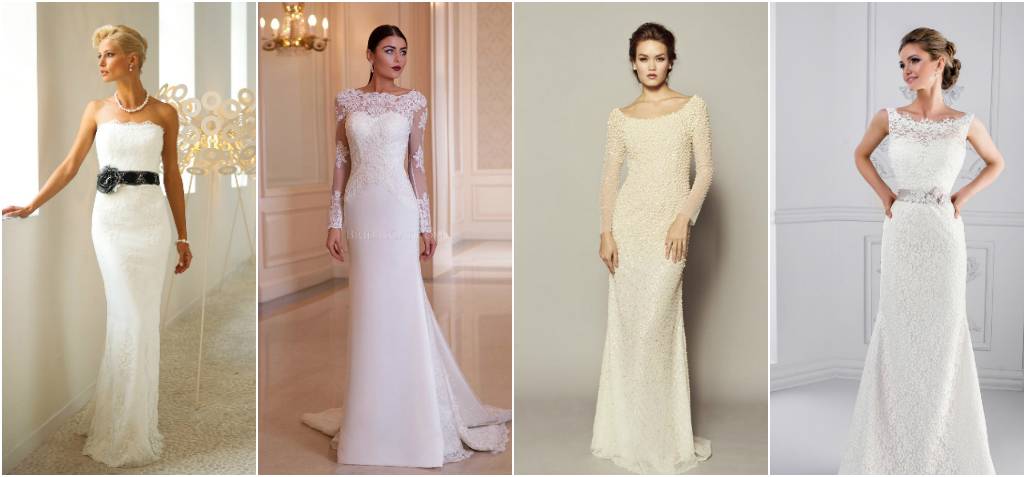 Для истинных ценителей минимализма, простоты и скромности. Платья данного вида обычно выполняются цельнокроенными, с небольшим акцентом на талии. Что бы модель не получилась скучной, зачастую к ней добавляется кружевной верх, болеро или рукава.