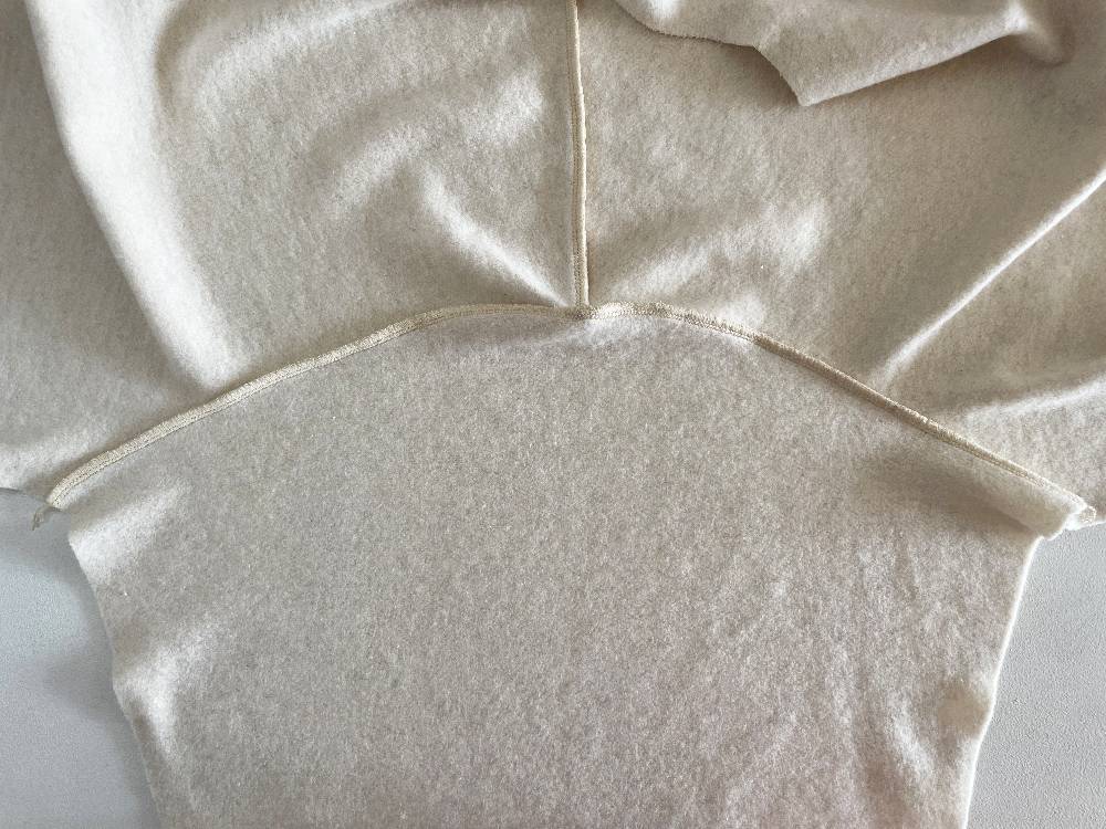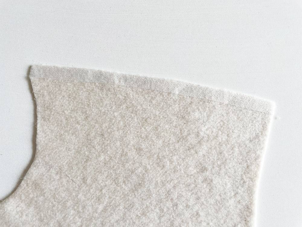 Деталь переда свитшота. Плечевой срез проклеиваем долевой нитепрошивной кромкой.