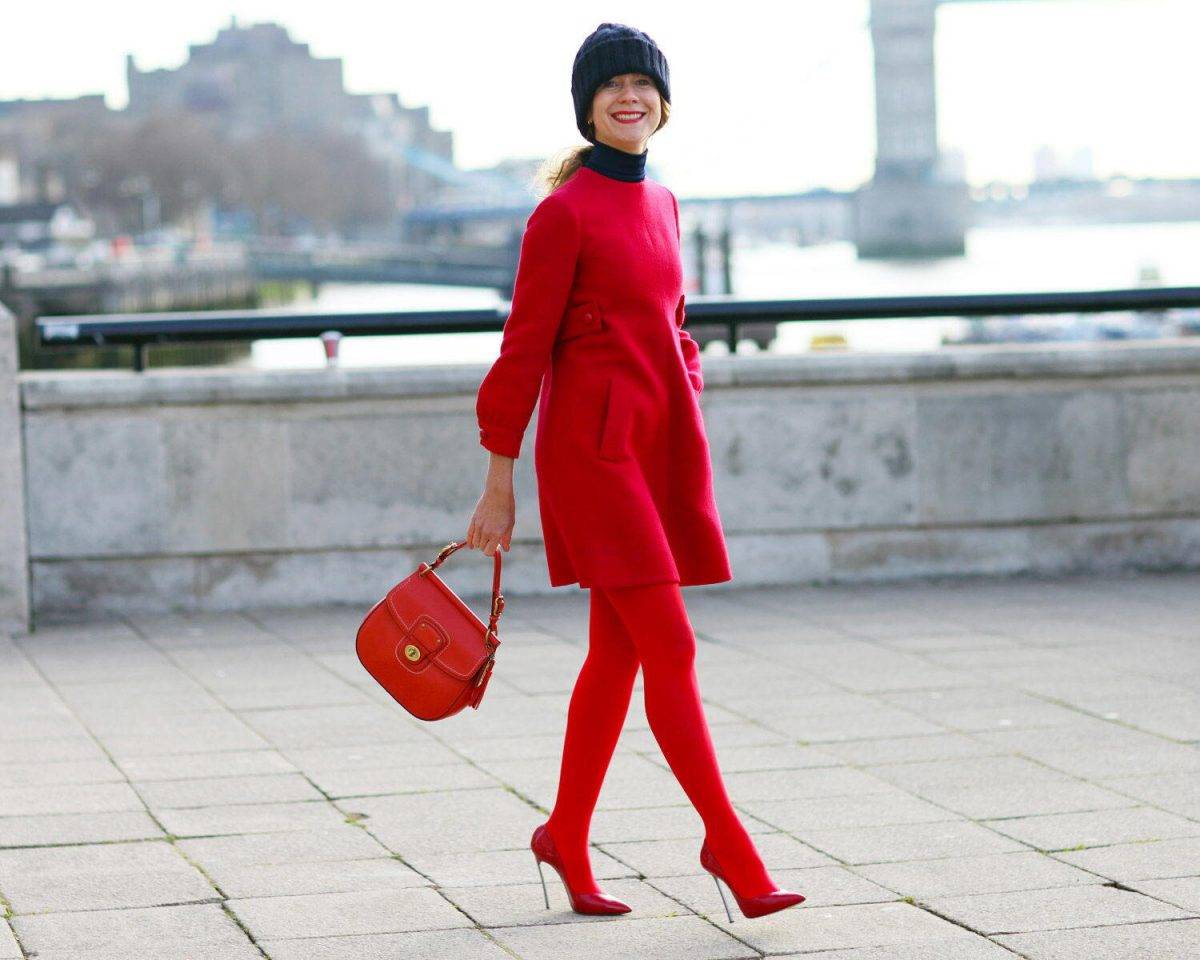 Белый снег, ранние сумерки, вечерние фонари — всё это хорошие декорации для цветных зимний колготок. А потому можно экспериментировать не только с оттенками белого, но и с более яркими цветами. Горячий красный, классический синий, тёплые оттенки серо-зеленого или жёлто-коричневого… А что бы вы хотели попробовать? Зимние образы допускают гораздо больше экспериментов, вплоть до сочетания цветов на грани фола, так почему бы не рискнуть?