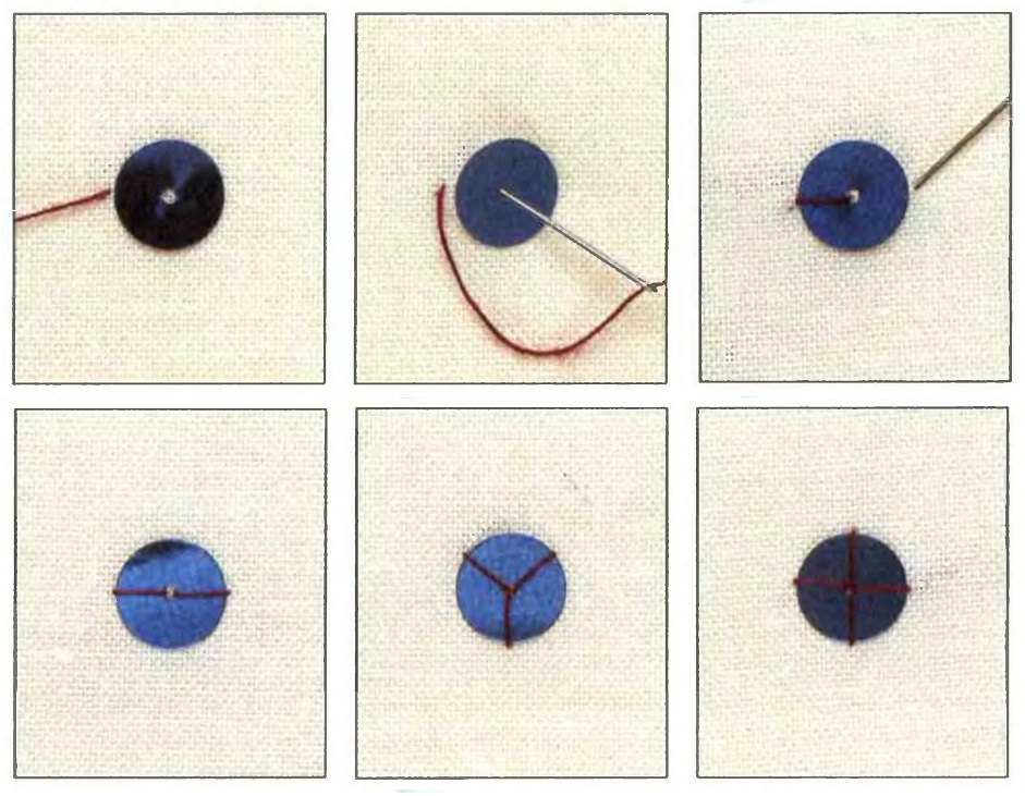 Таковым образом делают два стежка, создавая «поперечник» имеющейся окружности либо 4 стежка «крестиком». Этот метод весьма тщательный.