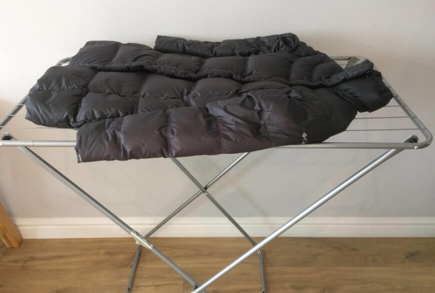 Когда куртка на ощупь станет сухой, рекомендуется подождать еще несколько часов. Склеившийся пух может хранить остатки влаги