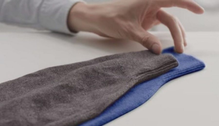 - Растяните изделие до нужных размеров и также зафиксируйте. Следите, чтобы одежда не стягивалась по ширине. Придавите элемент гардероба тяжелым предметом. Например, можно использовать коробку с вещами.