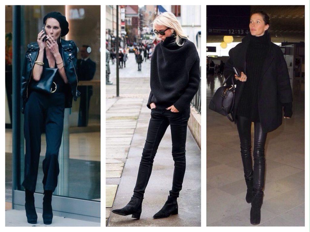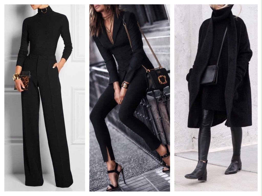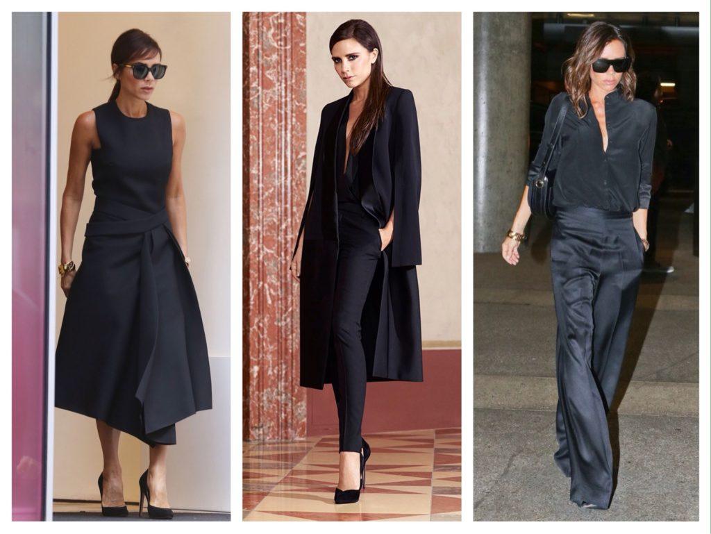 Их часто можно увидеть на Тейлор Свифт, Виктории Бэкхем или Рианне. Фото в таких комплектах регулярно появляются на страницах модных журналов. Используя тотал блэк, можно создать образ, подходящий для любого мероприятия.