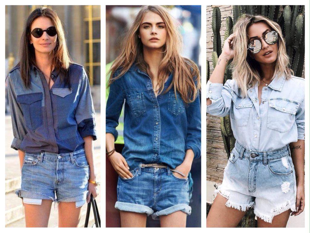 Короткие шорты и топ (рубашка) такого же оттенка. Аксессуары при этом могут быть яркими.