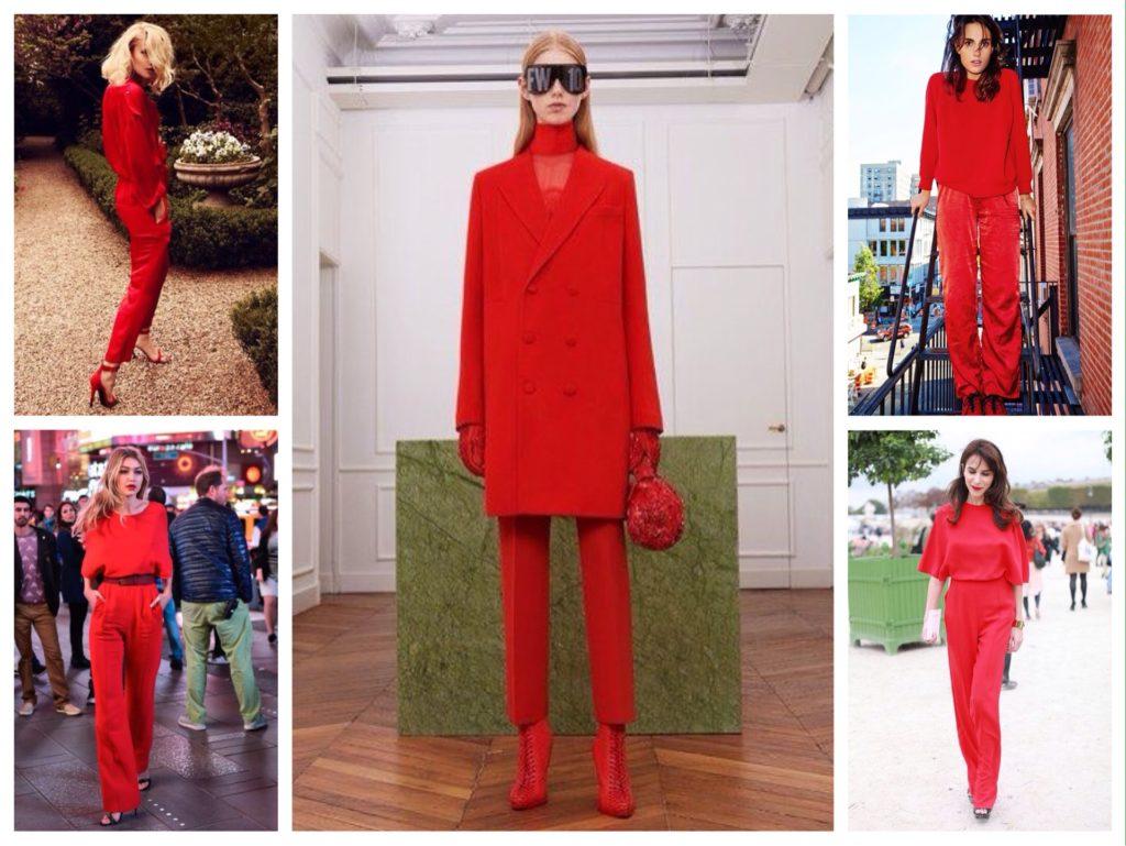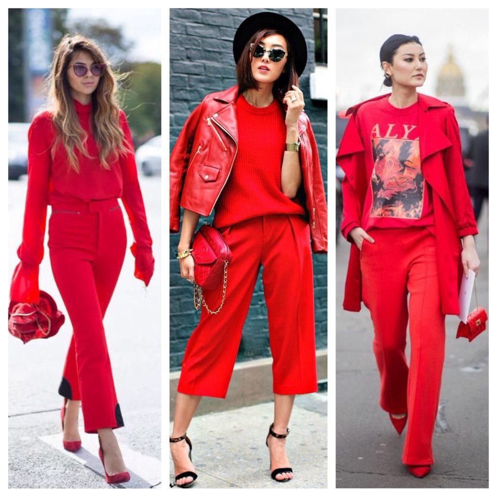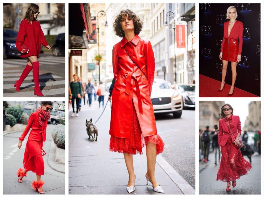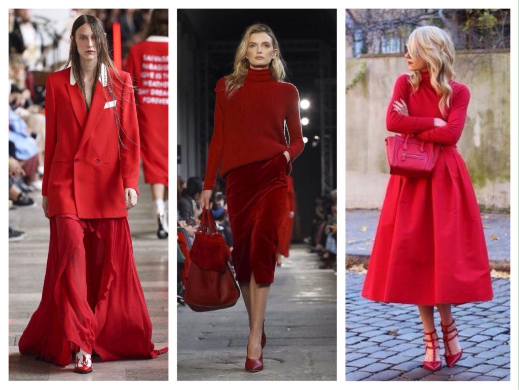 Красный тотал лук можно назвать выбором смелых и уверенных в себе девушек. И это не удивительно, ведь в таком наряде всегда оказываешься в центре внимания. Разбавить образ из яркой юбки и такого же джемпера помогут контрастные аксессуары.