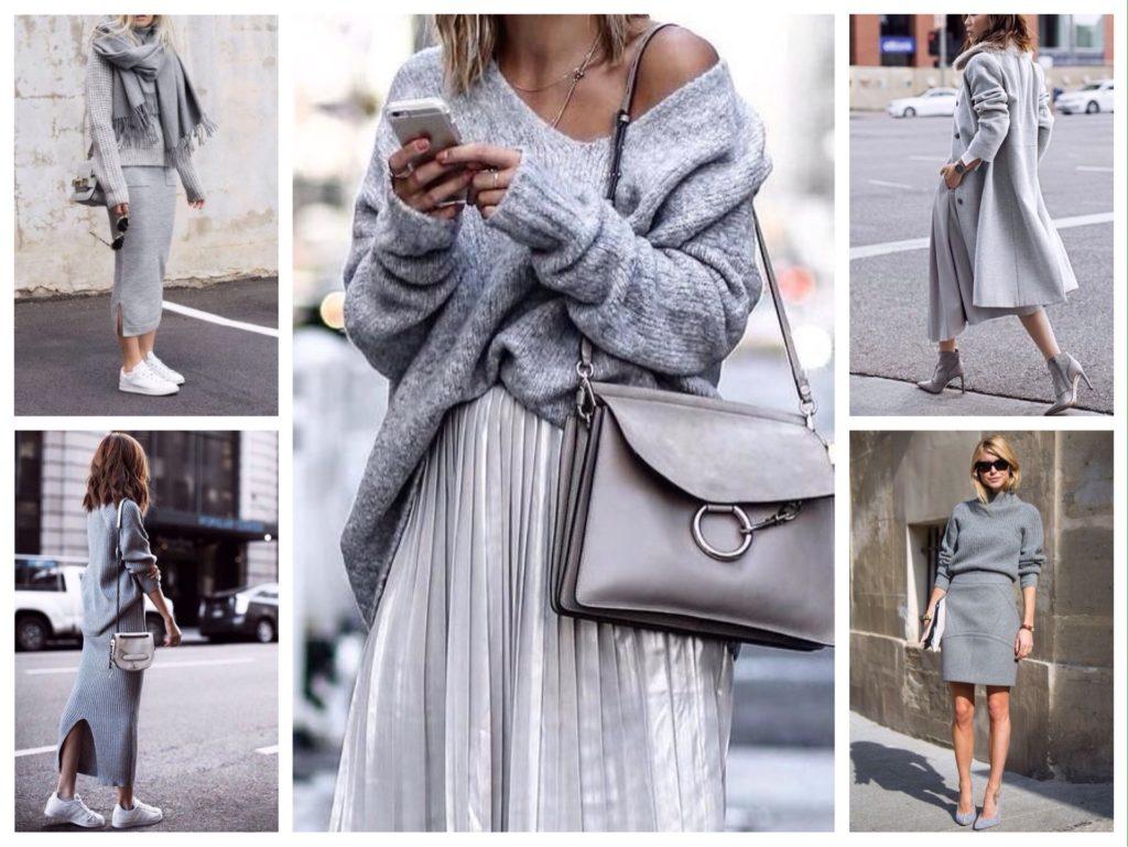 Серые образы с юбками