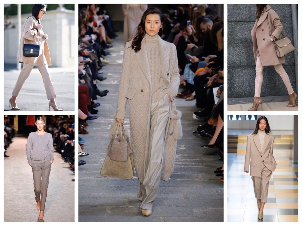 Надеть на себя такой total look решаются только смелые девушки. Чтобы не выглядеть блекло и вместе с тем оставаться стильной, при составлении комплекта нужно делать акцент на разнообразии фактур и выбирать бежевые полутона.