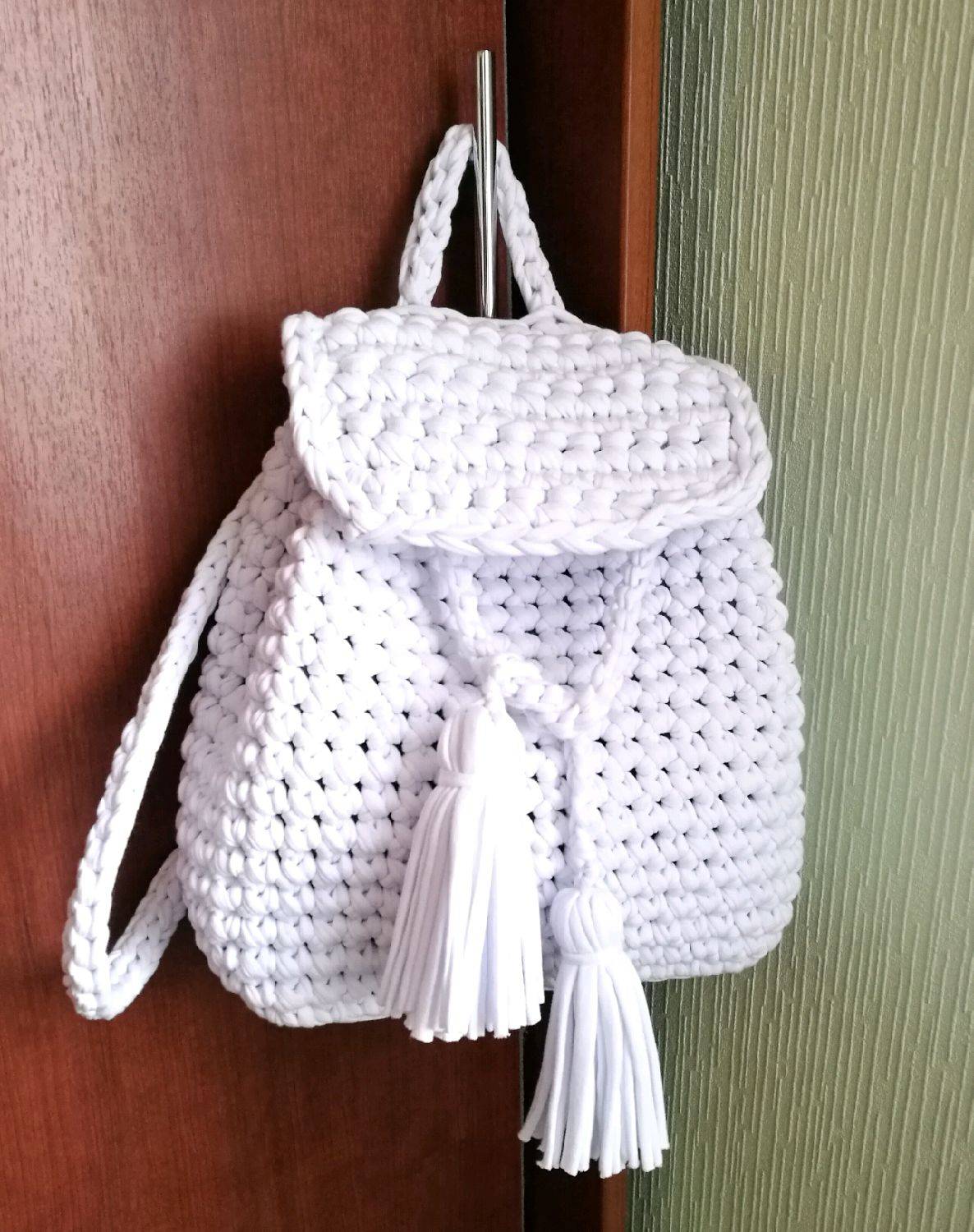 Украшение и декор рюкзака из трикотажной пряжи