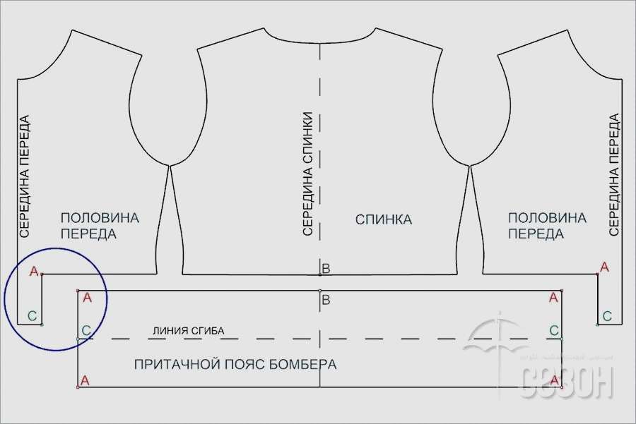 Примерная выкройка бомбера небольшого размера. Размеры можно менять.