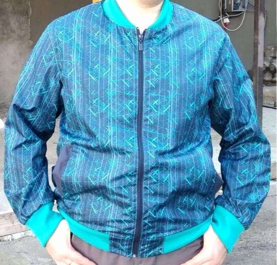 Мужской бомбер по той же выкройке и практически того же фасона что на предыдущем фото, может выглядеть вот так, выкройка немного адаптирована, выбрана другая ткань.