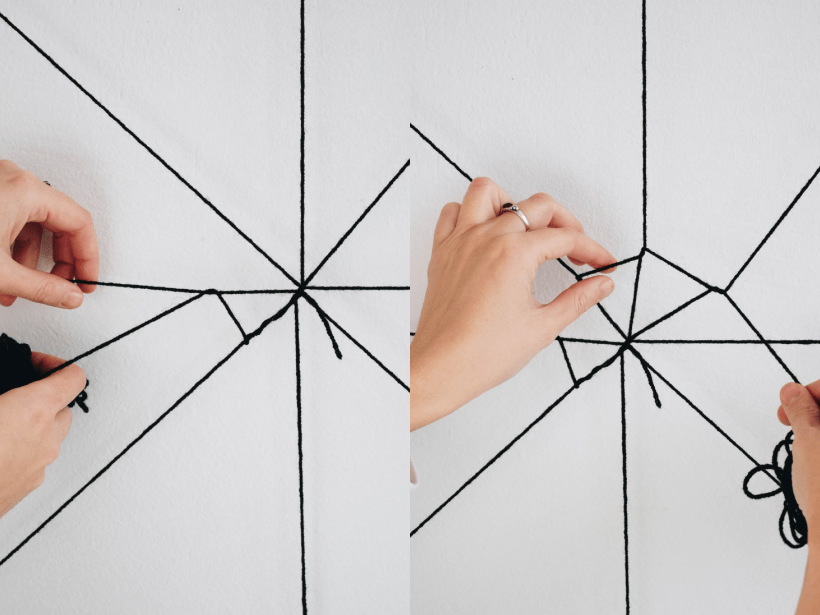 Продолжайте обматывать нити до тех пор, пока не достигнете желаемого размера паутины.