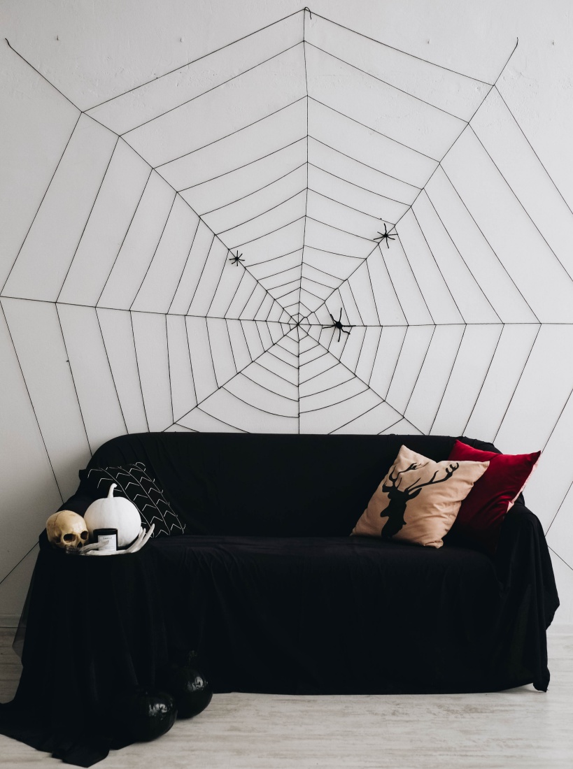 Мне кажется, это один из самых бюджетных и быстрых проектов, которые появлялись в этом блоге. Паутину можно закрепить на стене, на маленькой или большой раме, или использовать в качестве основы деревянные палки. Этот простой, но стильный декор отлично дополнит криповые декорации на улице, в доме, в офисе или пространстве, где намечается Хеллоуин-вечеринка.