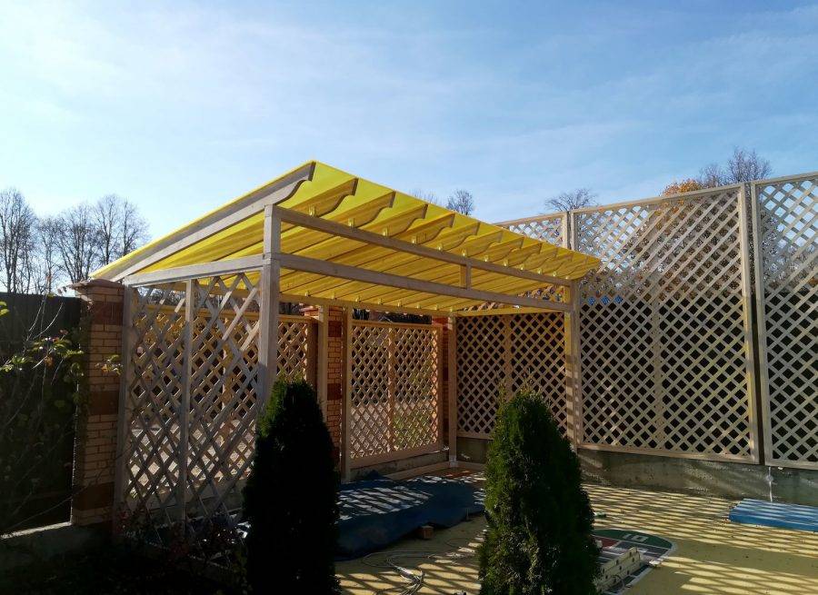 Таковые изначально создаются, чтобы защитить от солнечных лучей ту или иную функциональную зону. Например, детскую площадку или бассейн.