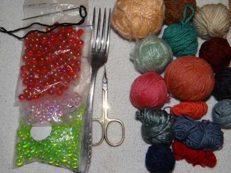 Для изготовления изделий таким способом понадобятся ножницы и пряжа.