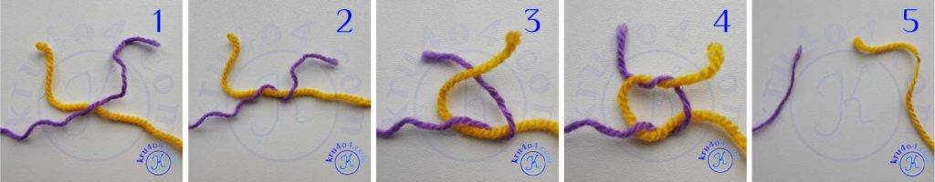 А вот если ваши нитки развязались, то вам надо всё время следить за тем, что вы должны связать 2 нити именно этим простым в исполнении, но все-таки, «хитрым» узлом.
