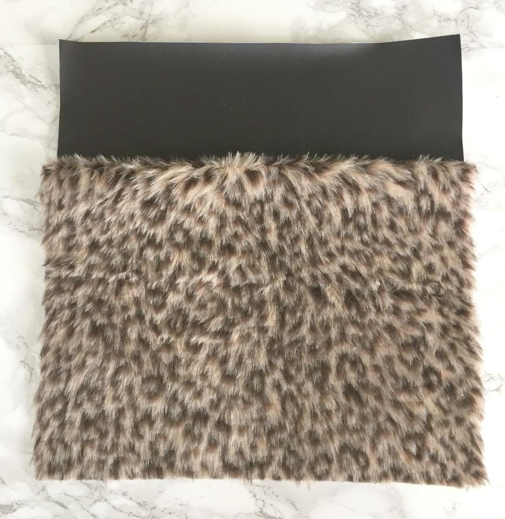 Задние части из искусственной кожи и меха сшиваются по изнанке с сохранением припуска. К задней панели прикладывают D-кольцо в нескольких миллиметрах от края. Тогда же вместе соединяют молнию и подкладку. Для закрепления можно использовать прищепки или иголки. Так как слой тканей получается внушительным, шить нужно медленно с использованием ручного колеса, а не педали.
