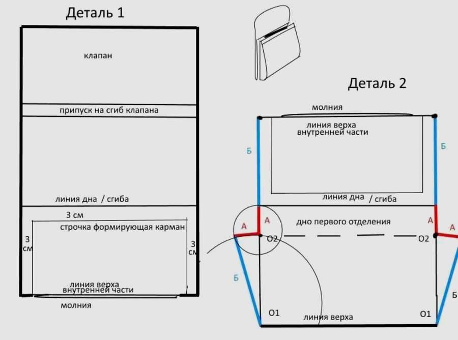 Новички могут сделать выкройку при помощи старой сумки. Ее нужно распустить, и каждую деталь обвести на подготовленной бумаге маркером. Далее базовая конструкция переносится на ткань, линии прорисовываются при помощи мела или тонкого кусочка мыла.