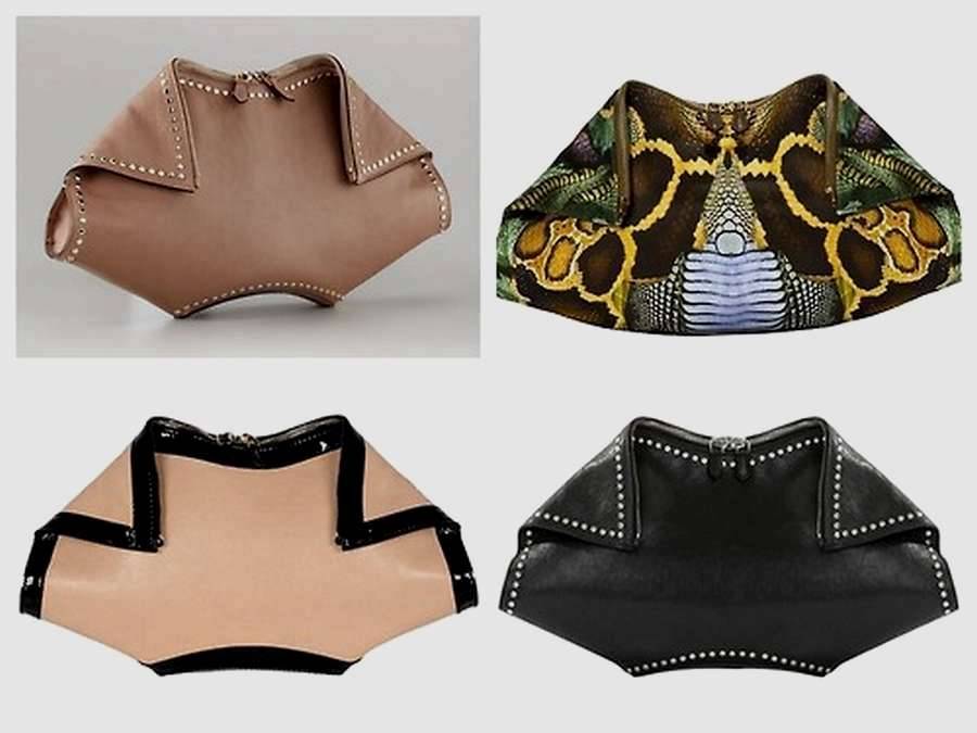 Женские клатчи оригинальной формы из кожи по одной выкройке.