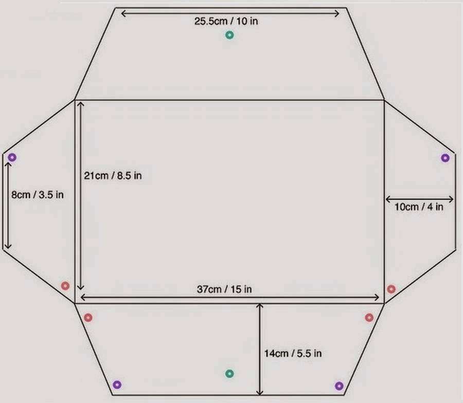 - Создайте выкройку: На большом листе бумаги или картона нарисуйте прямоугольник с размерами вашей будущей сумочки. Это будет основа выкройки. Затем нарисуйте прямоугольные полосы для ручек с желаемыми размерами и формой.