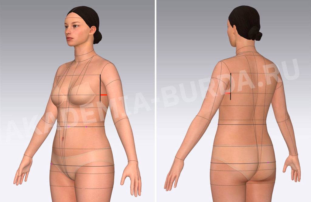 Они необходимы для составления лекала будущего изделия. Измеряются полностью, но записываются в половинном размере. Кроме, обхвата и ширины плеча.