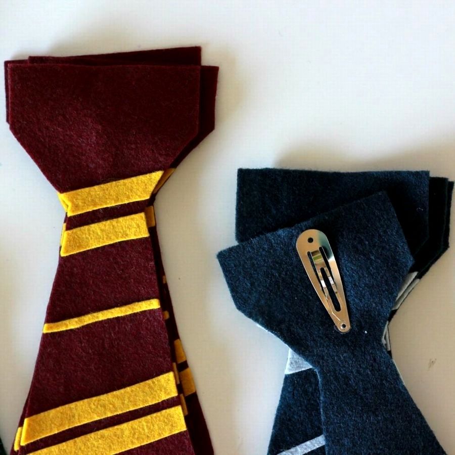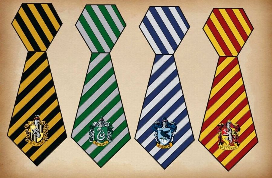 Галстуки можно сделать для любого факультета Хогвартса, у Гарри Поттера галстук в красно-желтую полоску.