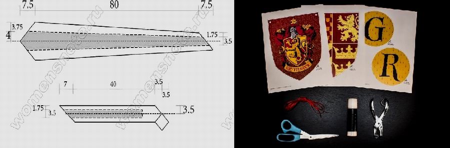 Выкройка галстука, по которой можно сшить любой галстук, хоть и в стиле Гарри Поттера, тут важна расцветка ткани, фасон и размеры всегда можно отрегулировать.