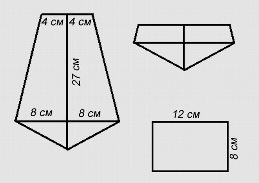 - Из ткани выкраиваются расчерченные прямоугольники.