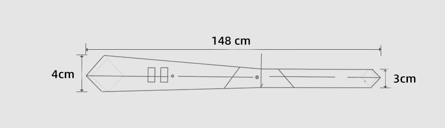 - Начертить на бумаге выкройку галстука: треугольник шириной примерно 9,0 см по низу (зависит от модели), длиной до 50 см (в готовом виде – не менее 145 см).