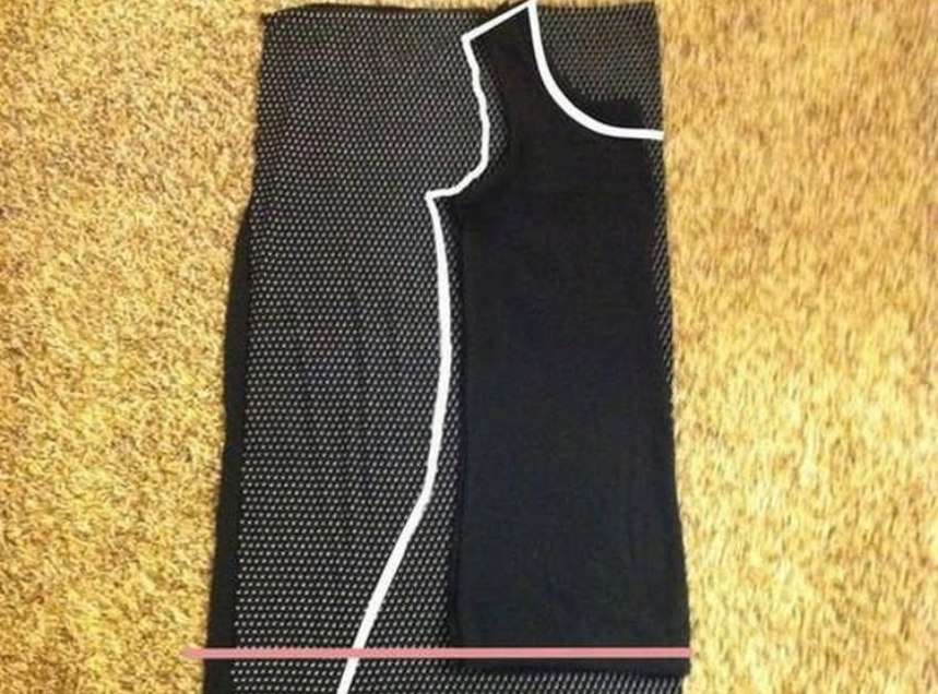 - Сложить отрез ткани пополам. Взять любимую футболку, которая лучше всего на вас «сидит».