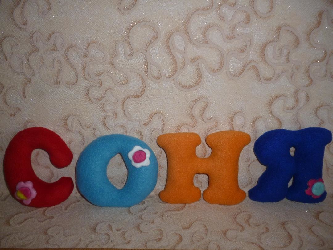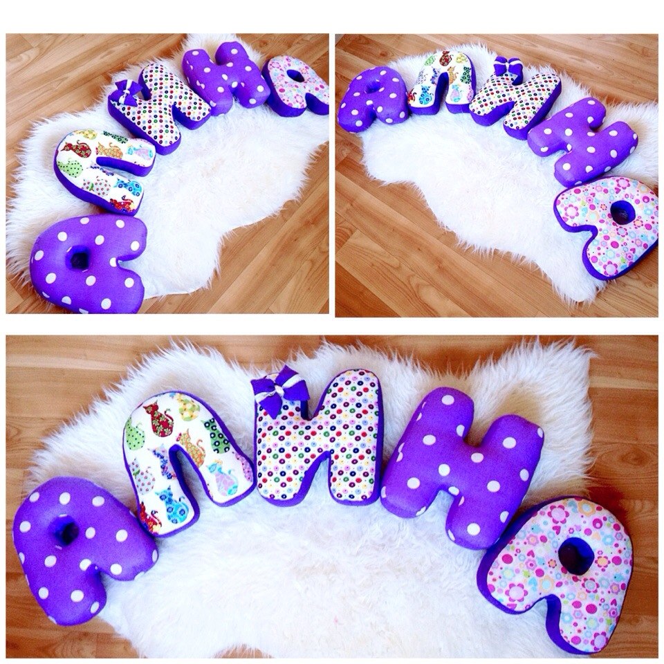 Фото именных букв-подушек своими руками