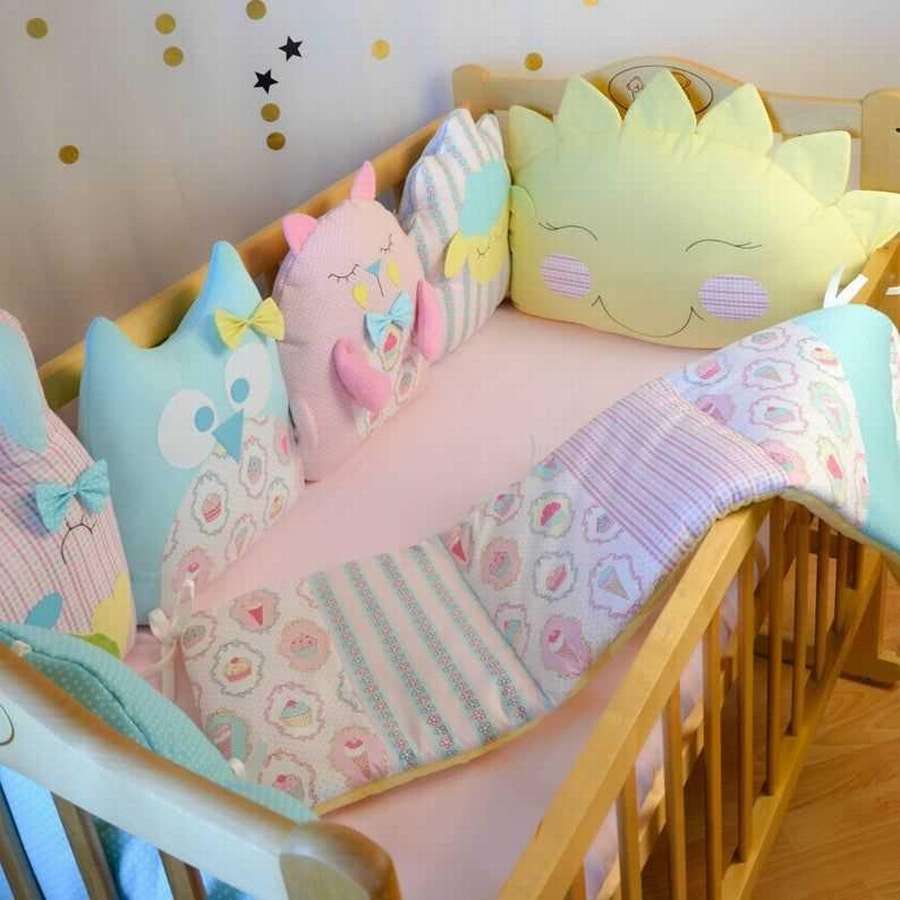Очень милые мягкие бортики в детскую кроватку своими руками представлены на фото ниже