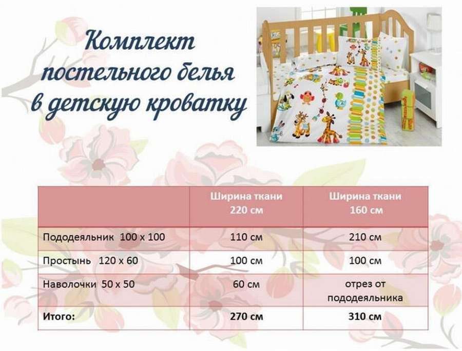 Расчет ткани на детское постельное белье