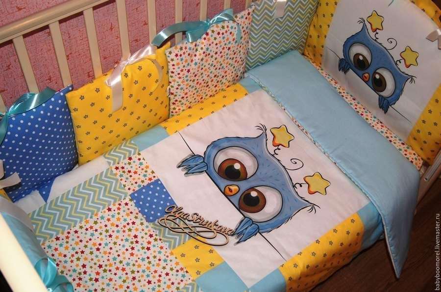 Такой вариант станет «палочкой выручалочкой», если кровать, новорожденного или ребенка постарше, имеет нестандартный размер и купить постельное белье по размеру не получается. Это также хорошая мотивация для применения своего мастерства в рукоделии или для освоения чего-то нового, полезного. Тем более, что пошить комплект постельного белья несложно, даже новичку, рекомендации данные ниже помогут осуществить желаемое.