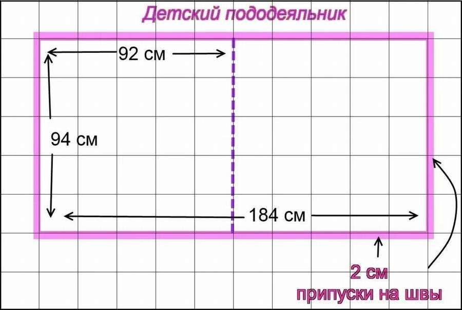 Следующий расчет пододеяльника будет очень удобен, ведь здесь надо будет просто ориентироваться на размер одеяла детского, которое будет в кроватке ребенка.