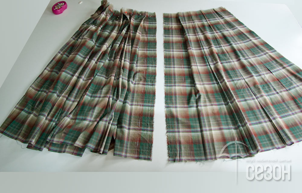 Выполнять подравнивание каждой складочки по верхней стороне деталей юбочки нецелесообразно, это следует делать лишь тогда, когда будут заложены все защипы. По нижнему краю изделие подравнивать не понадобится.