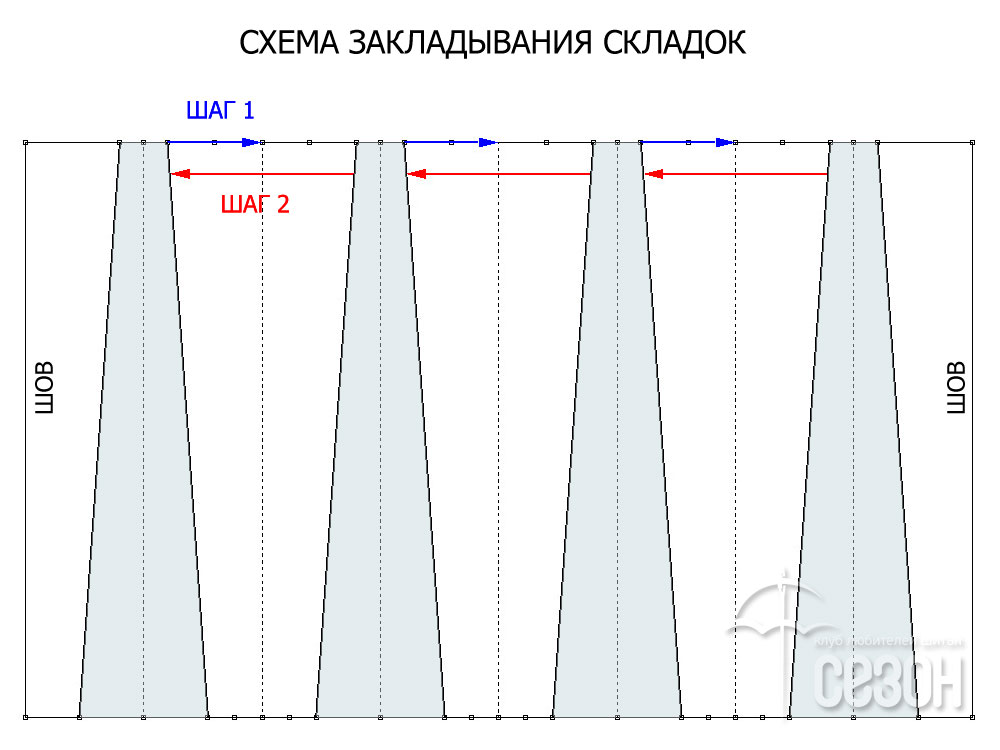 Этот нестандартный способ закладки достаточно сложно выполнить сразу на ткани. Для понимания принципа рекомендуем потренироваться на кальке или ватмане.