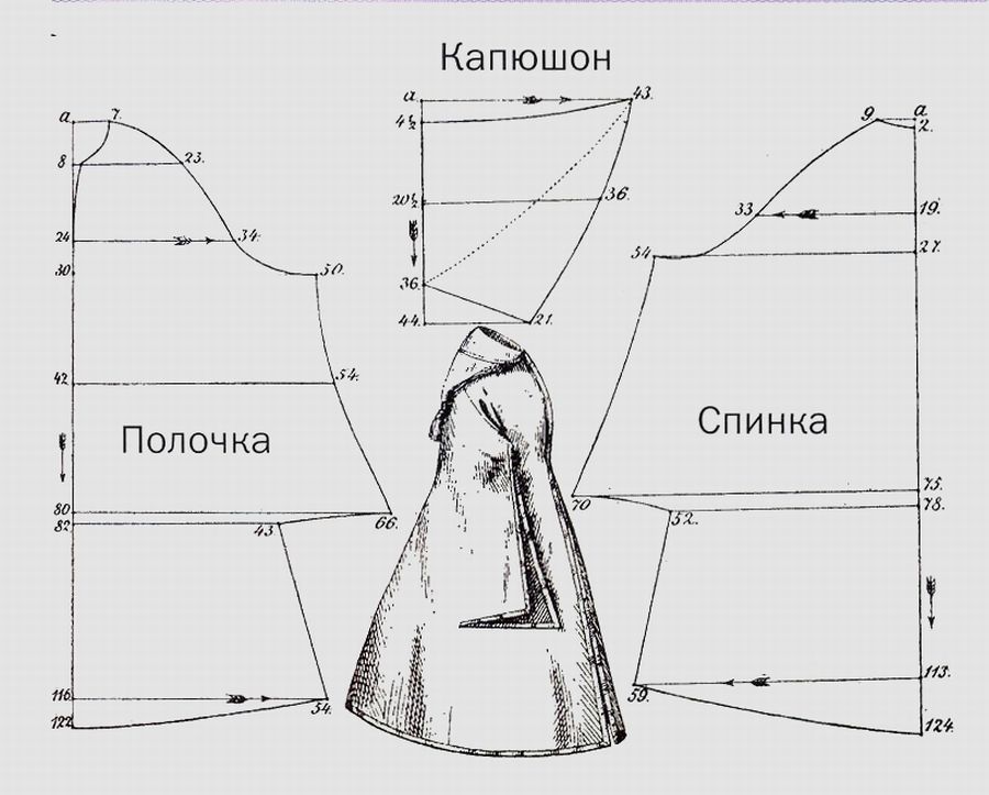Выкройка дождевика с капюшоном. Построение выкройки имеет много общих моментов для многих видов верхней одежды.