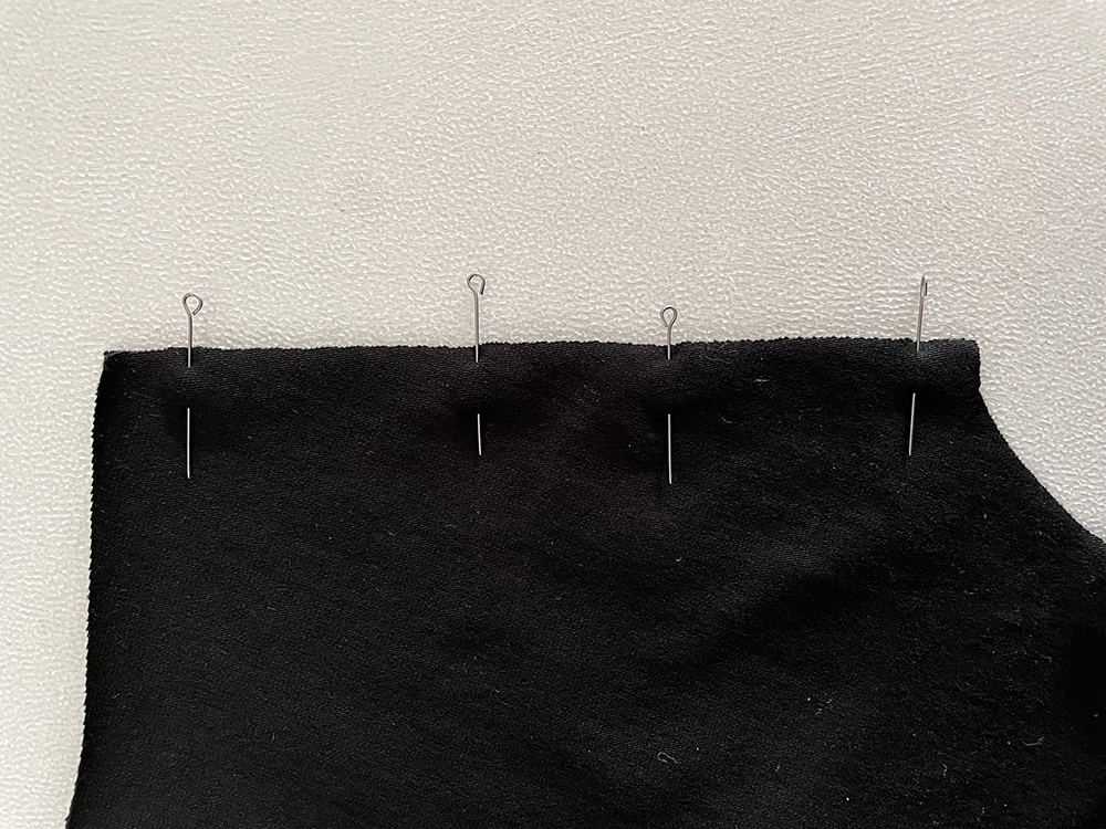 - Для горловины спинки булавки надо вставлять вертикально через шов.